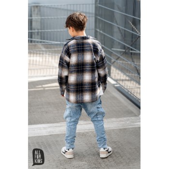 Bawełniana koszula zapinana na guziki. Koszula bardzo miękka, może służyć jako koszula, bluza, narzutka. Krata w kolorze niebiesko-brązowym.