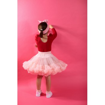 Bluzeczka z długim rękawem w kolorze czerwonym. Przy ramionach ozdobne marszczenie.