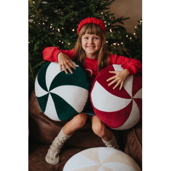 Dekoracyjna świąteczna poduszka okrągły cukierek karmelek. Okrągła i miękka. Wspaniała świąteczna dekoracja do Twojego domu na lata. Może też służyć za pufkę do siedzenia dla dziecka.