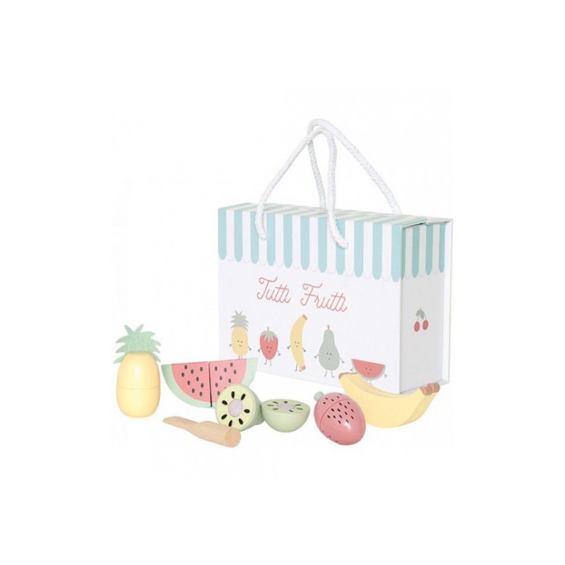 Dlaczego nie poćwiczyć liczenia podczas gry; ile będzie kawałków owoców, jeśli je podzielisz, a ile, jeśli złożysz je ponownie? Dzięki owocom możesz ćwiczyć zarówno kolor, jak i kształt, jednocześnie trenując zdolności motoryczne. Zestaw wykonany jest z drewna i znajduje się w walizce, którą można łatwo otworzyć i zamknąć za pomocą magnetycznego zapięcia.